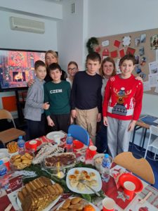 Uczniowie przygotowali świąteczne kartki dla osób w kryzysie bezdomności oraz dla Pań z Domu Pomocy Społecznej przy ul. Kawęczyńskiej.