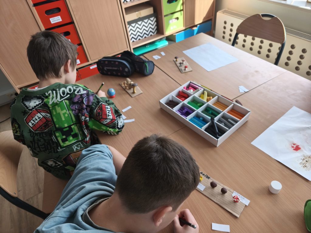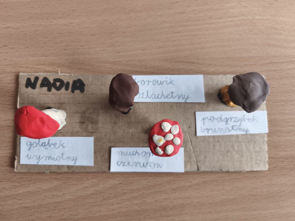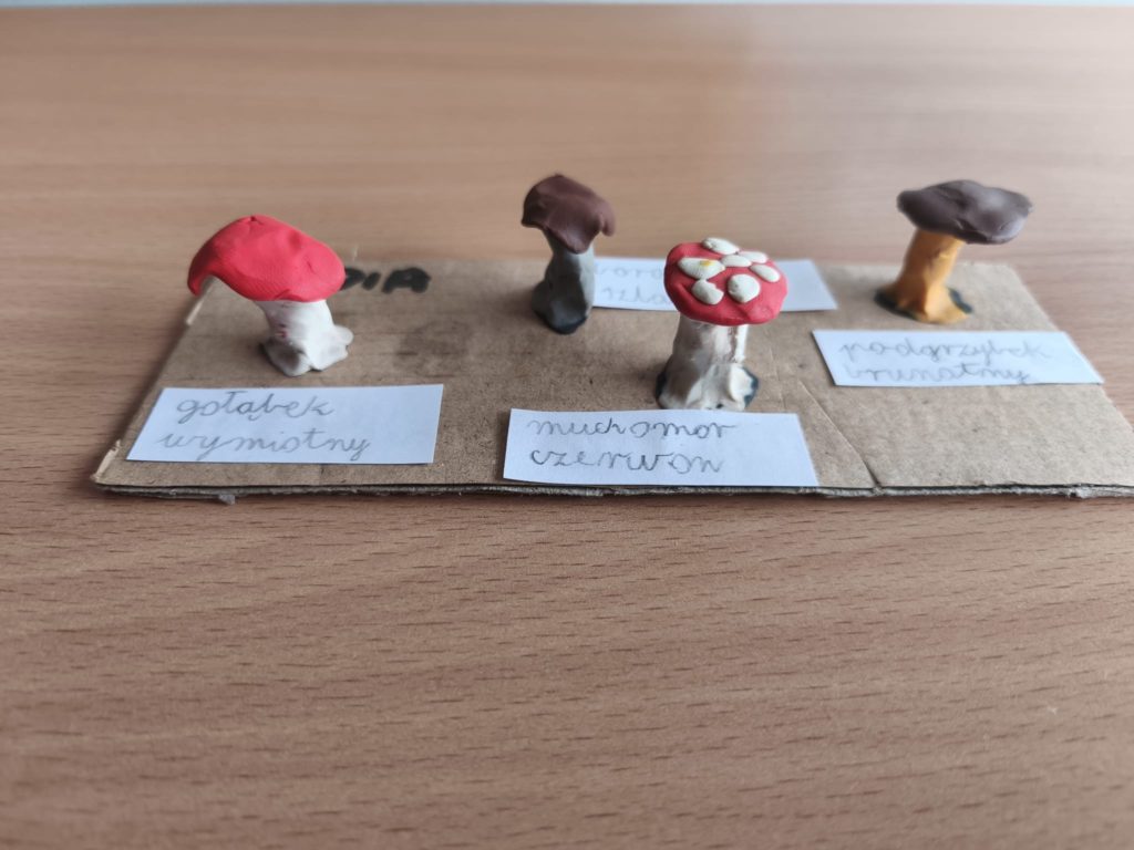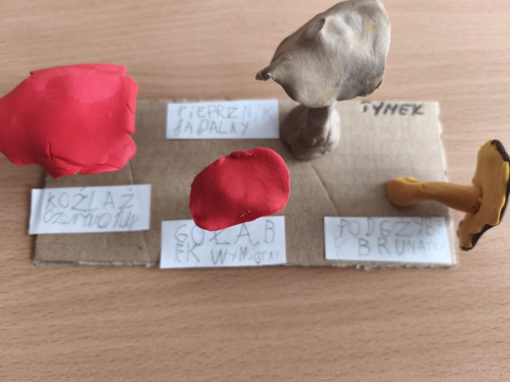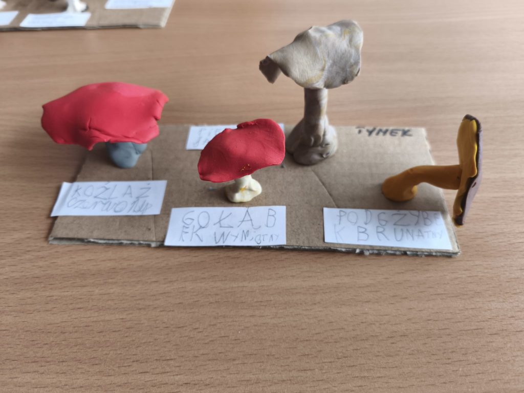 Podczas zajęć uczniowie lepili różnorodne grzyby – zarówno te, które można znaleźć w koszyku grzybiarza, jak i takie, których lepiej unikać w lesie.