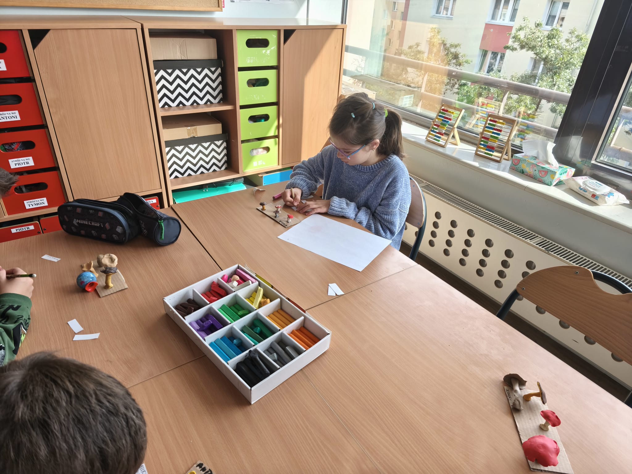 Tworząc kapelusze, trzonki czy charakterystyczne kropeczki, dzieci ćwiczyły nie tylko swoją wyobraźnię, ale także sprawność manualną.